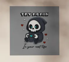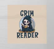 Un piccolo mietitore siede davanti a una lapide, avvolto nel suo mantello scuro, completamente immerso nella lettura. Il gioco di parole "Grim Reader" gioca con le parole mietitore e lettore, creando una fusione perfetta tra l'oscuro e il letterario. Perfetto per gli amanti dei libri, dell'umorismo intelligente e di un tocco di estetica gotica!