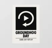 Stampa di Groundhog Day, Poster cinematografico alternativo, Bianco e nero, Arte murale minimale, Segno di replay, Ciclo del tempo, Stampe di alta qualità, Regalo per i fan del cinema