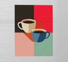 The perfect pairing to start the day or fill the belly! This design features a delicious burger and a mouth-watering cup of coffee, full of details and eye-catching colors.