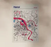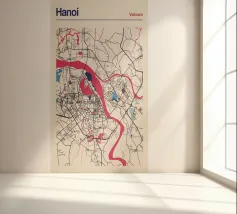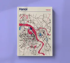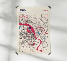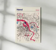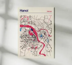 Questa elegante mappa di Hanoi mostra l'energia fluida della capitale vietnamita. Con linee pulite, colori vivaci e dettagli precisi, riflette la vita vibrante e i corsi d'acqua della città - un'opera d'arte moderna per gli amanti della cultura urbana.