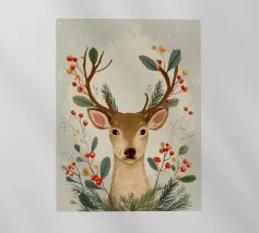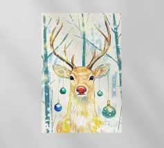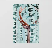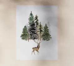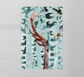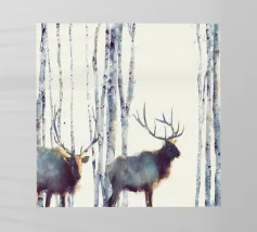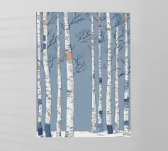Peek-a-boo! A winter scenery with birch trees and a stag that's playing hide and seek in the forest.