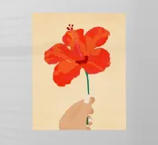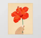 "Hibiscus Affection" mostra il dolce abbraccio di un ibisco arancione nella mano, catturando il calore e la tenerezza della connessione umana con la natura. La fioritura vibrante simboleggia l'amore e la tranquillità, offrendo un momento di serena bellezza.