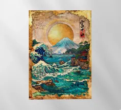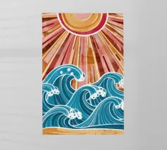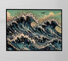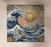 Un design Art Nouveau ispirato alle onde alte e alle brezze rigide nei toni del blu e del giallo tenue.