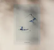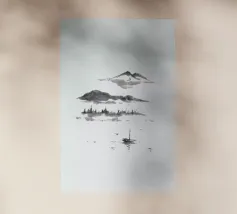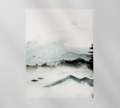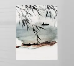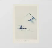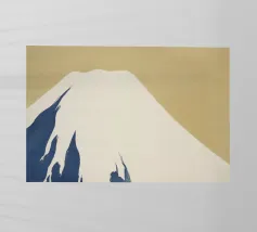 Hokusai - A Person in a Small Boat on a River with Mount Fuji in the Background pellicola backlit