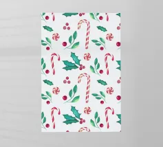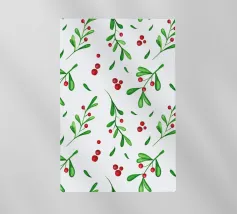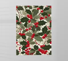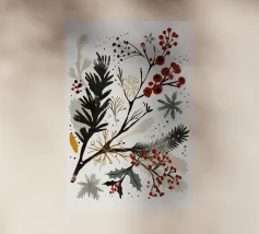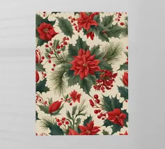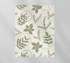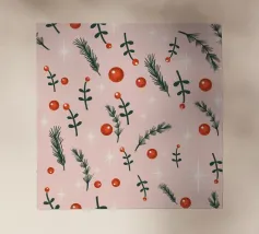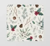 Pattern di elementi natalizi come pigne, agrifoglio, vischio ed eucalipto.