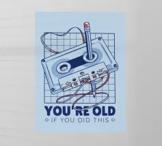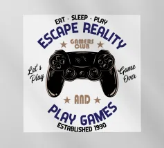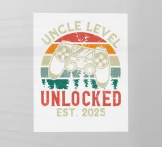Un controller di gioco retrò è accompagnato dalla frase "Non invecchio, salgo di livello", utilizzando uno stile di carattere nostalgico. Questo design combina la cultura del gioco vintage con una visione umoristica dell'invecchiamento.