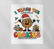 Un allegro biscotto con un cappello da Babbo Natale è circondato da decorazioni festive, libri e cioccolata calda. La scritta "Insegno ai biscotti più intelligenti #tistheseason" aggiunge un messaggio giocoso e a tema natalizio.