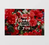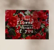 Una poesia visiva di colori ed emozioni: fiori rossi brillanti su uno sfondo verde lussureggiante fanno da sfondo alla scritta bianca "If I had a flower for everytime I thought of you" (Se avessi un fiore per ogni volta che ho pensato a te), una frase che oscilla come un pensiero silenzioso tra nostalgia e affetto. La composizione vive del contrasto tra l'intensità floreale e la chiarezza tipografica. Sembra un momento catturato, personale e universale allo stesso tempo.
