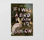 Se fossi un uccello mostra un dipinto del XIX secolo con diverse specie di uccelli e la scritta: Se fossi un uccello, so chi cagherei.