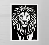 Questo capolavoro monocromatico riduce il re degli animali ai suoi contorni essenziali. L'estetica della silhouette ricorda le xilografie espressioniste degli artisti della Brücke e le rappresentazioni di animali di Franz Marc. La radicale composizione in bianco e nero crea una presenza monumentale: ogni linea della criniera fluente, ogni accento dello sguardo penetrante è perfetto. Le dentellature e le curve dinamiche creano movimento e vivacità nonostante la riduzione bidimensionale. Tecnicamente basato sulla tradizione della linoleografia, ma contemporaneo. Una dichiarazione di età, dignità e saggezza.