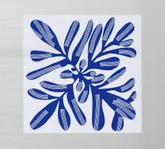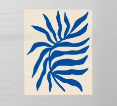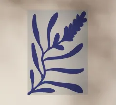 "Indigo Elegance" mette in mostra un unico, grazioso ramo ornato da abbondanti foglie dai ricchi toni indaco. Questo disegno astratto conferisce un senso di calma e raffinatezza a qualsiasi spazio.