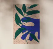 Illustrazione stilizzata e ravvicinata di una grande foglia blu scuro con venature visibili, su uno sfondo semplice, che si concentra sulla bellezza della sua forma naturale.