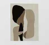 Un disegno astratto con sfumature di marrone e nero crea la silhouette del profilo laterale di una persona. L'approccio minimalista utilizza blocchi di colore distinti e sfumature delicate per suggerire la forma.
