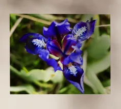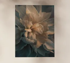A stunning bearded iris in full bloom, captured in a close-up view against a dark background. The intricate details of the flower's ruffled petals, vibrant colors, and contrasting textures are beautifully highlighted. This exquisite artwork celebrates the beauty and elegance of nature's creations.