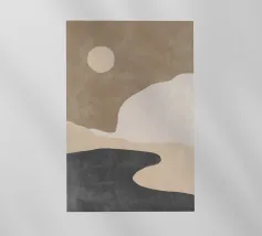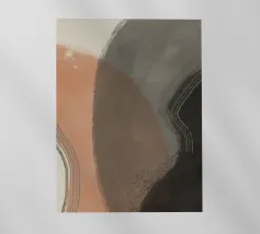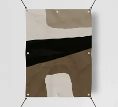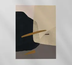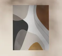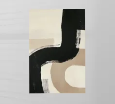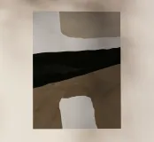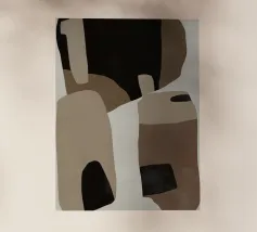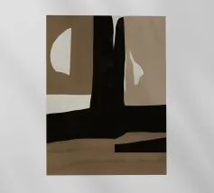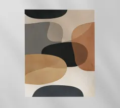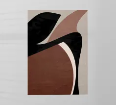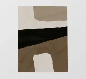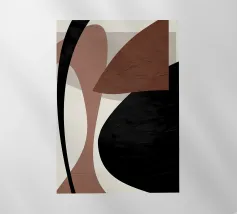 Forme astratte nei toni del marrone, del nero e del bianco si sovrappongono e contrastano tra loro per creare una composizione moderna e minimalista. Il design impiega una palette di colori sofisticati e sottolinea la forma e l'equilibrio, evocando un senso di calma e semplicità.