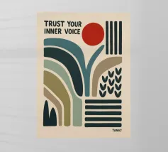 Elegante design retrò con foglie dai colori caldi e uno slogan ispiratore. Porta vibrazioni positive nella vostra casa - perfetto come decorazione o regalo.