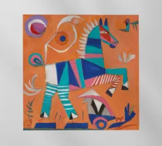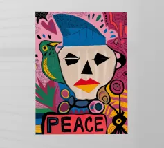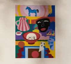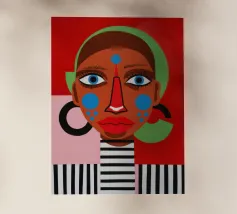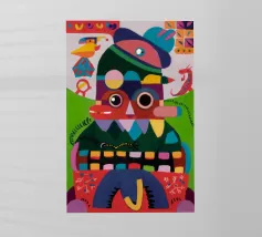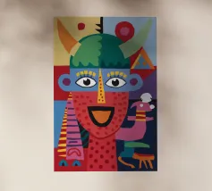 Un vivace volto astratto, infuso di motivi giocosi e contrasti audaci, emana esuberanza e celebrazione.