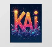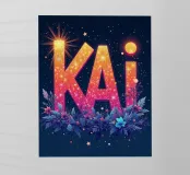 Kai "Oceano e mare" fiori e foglie blu circondano il nome, che risplende di bellezza.