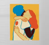 L'abbraccio colorato di due donne pellicola backlit