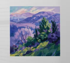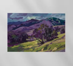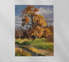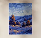 Questo splendido dipinto a olio originale, realizzato con una spatola, cattura la transizione mozzafiato di un paesaggio autunnale. La tecnica a impasto spesso crea una texture ricca e tridimensionale che rende l'opera viva. I tratti audaci di blu e viola vibranti delle colline e del cielo sono splendidamente contrastati dai caldi arancioni e gialli degli alberi autunnali. Questo pezzo è una celebrazione della luce e della struttura, perfetto per aggiungere un tocco di serena e dinamica bellezza a qualsiasi casa o ufficio. È un vero e proprio oggetto da collezione per coloro che apprezzano le qualità espressive e tattili di questa opera.