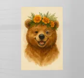 Cordiale e selvaggiamente saggio, l'Orso Botanico è una celebrazione del fascino del bosco e della giocosa eleganza. Questa creatura coccolosa emette un sorriso di gioia, adornata da una corona di calendule dorate e sbirciando attraverso un elegante monocolo. Dipinto in toni acquerello ricchi e terrosi, questo disegno porta sorrisi, intimità e un pizzico di bizzarria forestale in qualsiasi spazio. Un'aggiunta perfetta alle camerette, agli angoli di lettura o a qualsiasi altro luogo che necessiti di un amico peloso con stile.