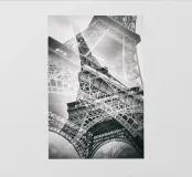 La Torre Eiffel è un punto di riferimento della capitale francese Parigi e simboleggia l'intera Francia in tutto il mondo. Una classica doppia esposizione della torre offre una visione dettagliata dei dettagli architettonici.