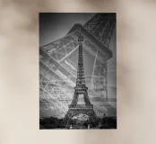 La Torre Eiffel è un punto di riferimento della capitale francese Parigi e simboleggia l'intera Francia in tutto il mondo. Una classica doppia esposizione della torre offre una visione dettagliata dei dettagli architettonici.