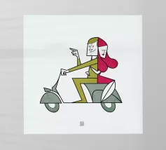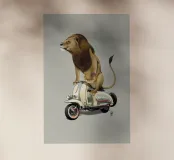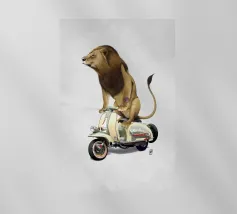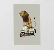 Rispetto a Cecil e alla mia precedente stampa Rooooaaar!, la seconda della serie di grandi felini su piccole moto!!! Il leone e la Lamb-retta!