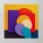 Vibranti forme geometriche in viola, rosso, giallo e blu si sovrappongono su un audace sfondo giallo e scuro, mostrando un'arte astratta dal tocco moderno.