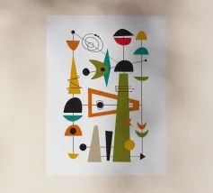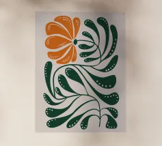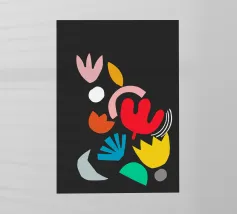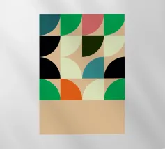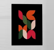 Un'opera d'arte astratta botanica, in cui audaci petali sovrapposti in vibranti rossi, verdi e morbidi beige creano un'armoniosa danza di colori e forme. Questo design sorprendente dona un tocco moderno e ispirato alla natura a qualsiasi spazio, perfetto per tele, poster o abbigliamento.