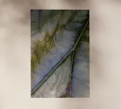 It feels slightly rough to the touch, with tiny ridges and bumps along the veins. Some areas are smooth and soft, while others have a waxy or velvety layer. When you look closely, you can see tiny pores and a subtle pattern that gives the leaf its unique texture.