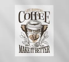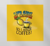 Un'opera d'arte umoristica con un vivace sfondo giallo, un limone, una tazza di caffè fumante e un testo scherzoso che recita "Life Gave Me Lemons So I Made Coffee". Perfetto per progetti motivazionali o spensierati.
