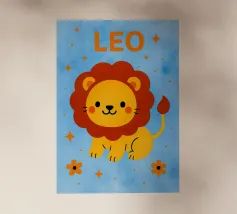 Adorabile e giocosa illustrazione del segno zodiacale del Leone. Questo Leone colorato e soffice, circondato da stelle e con un'espressione vivace, cattura l'energia calda e orgogliosa del segno. Perfetto per chi ama l'astrologia e cerca un tocco unico e divertente per il proprio spazio. Disponibile su vari prodotti e accessori per la casa