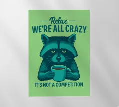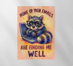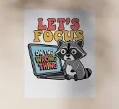 Un procione dei cartoni animati siede davanti a un computer portatile aperto con un testo colorato che recita: "Concentriamoci sulla cosa sbagliata".