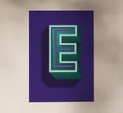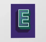 E maiuscola in rilievo con dettagli su sfondo blu.