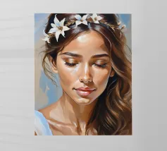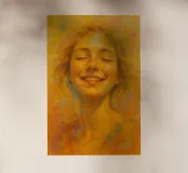 "Lightness Within" è un ritratto luminoso che cattura la gioia pura e radiosa. Una giovane donna, con gli occhi chiusi e sorridenti, è immersa in una luce dorata, circondata da tenui esplosioni di arancione, rosa e blu pastello. Le pennellate espressive e la ricca texture evocano calore, pace ed emozione, fondendo la tecnica classica del ritratto con un'energia fresca ed edificante. Questa stampa in edizione limitata è perfetta per i collezionisti che cercano positività e colore nei loro spazi. Disponibile in esclusiva presso ART.PIECE su Juniqe.