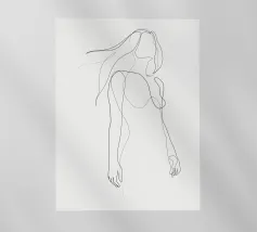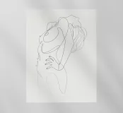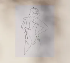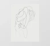 Un nudo espressivo di una sola riga con la schiena inarcata e la testa all'indietro, catturato in un momento di apertura e abbandono. Una rappresentazione minimale e sensuale della passione e della vulnerabilità femminile.
