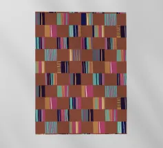 Un motivo geometrico di grande impatto, caratterizzato da sottili strisce verticali in tonalità vivaci di rosso scuro, blu, verde, rosa, giallo e arancione su un morbido sfondo beige. Questo disegno crea un dinamico effetto patchwork con un giocoso gioco di colori e un'estetica moderna di ispirazione Bauhaus. Perfetto per ravvivare l'arredamento della casa, gli accessori, l'abbigliamento e molto altro ancora, grazie al suo fascino pulito e contemporaneo e al vivace stile a righe!