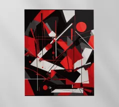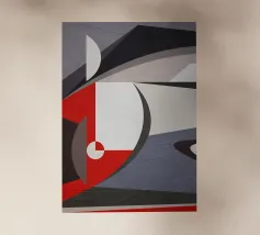 Questa composizione dinamica esplora l'energia delle forze che si intersecano. Linee nitide in bianco e nero attraversano un campo rosso, creando un senso di velocità, conflitto e caos controllato. Parte della serie "Constructs", quest'opera incanala l'intensità urbana attraverso un linguaggio minimalista e ad alto contrasto. Invita lo spettatore a trovare ritmo e movimento nella pura forma.