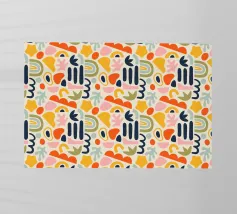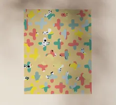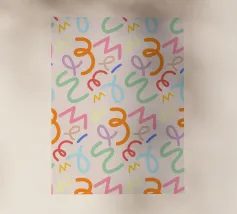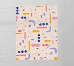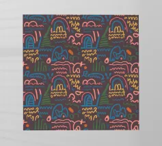 Questo disegno presenta una composizione astratta di linee e forme fluide in colori vivaci. Gli elementi sono disposti in modo armonioso e conferiscono al disegno un aspetto dinamico e giocoso.