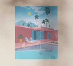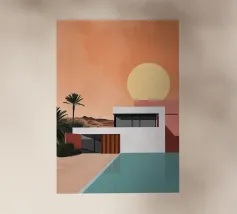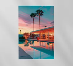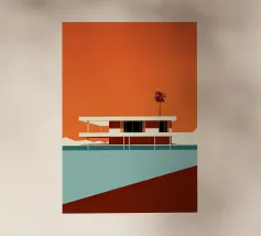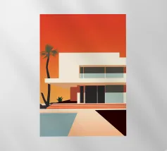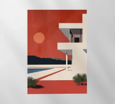 Immergetevi nella serena bellezza di un'ideale villa di metà secolo arroccata direttamente sulle tranquille acque di un lago. Quest'opera d'arte cattura magistralmente l'eleganza e la semplicità dell'architettura moderna, fondendo la serenità naturale con un design senza tempo. Un rifugio visivo perfetto per gli amanti dell'estetica raffinata.