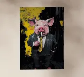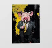 Maiale in giacca e cravatta che fuma sigarette pellicola backlit
