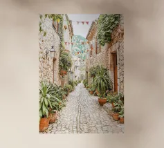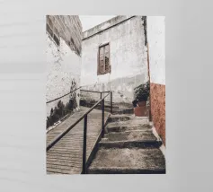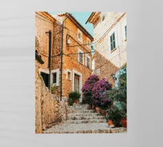 La foto mostra una scala in pietra mediterranea a Maiorca. Il villaggio di Fornalutx è considerato uno dei più belli della Spagna! Mi piace sempre andarci e passeggiare con la mia macchina fotografica. Questo poster è un must per ogni fan di Maiorca!