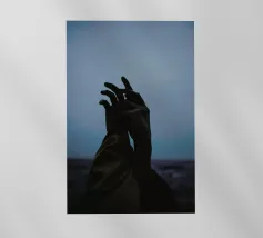 Mani protese verso la luce in un ambiente minimalista pellicola backlit