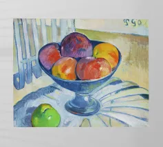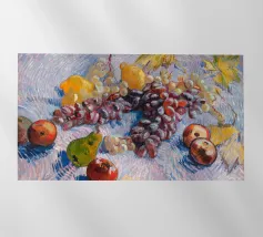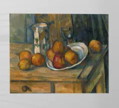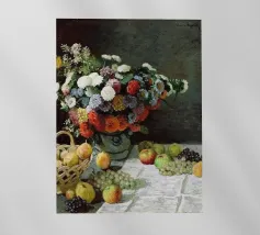 Un'affascinante natura morta del maestro impressionista Claude Monet, che mette in mostra la tranquilla eleganza degli oggetti quotidiani Presenta una disposizione rustica di mele e uva su un tavolo rivestito di bianco, immerso in una morbida luce naturale Cattura la bellezza fugace della frutta matura con pennellate sciolte e tonalità calde e autunnali Un'opera intima che si discosta dai famosi paesaggi di Monet e che è stata dipinta in casa durante il maltempo. Un'opera d'arte senza tempo e rilassante, perfetta per cucine, sale da pranzo o qualsiasi altro interno accogliente Regalo ideale per gli amanti dell'arte, per i cuochi o per chi apprezza l'estetica rustica e la natura morta