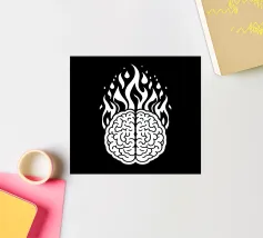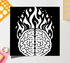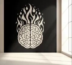 Questa straordinaria opera d'arte, "Ignited Mind", presenta un'illustrazione dettagliata e stilizzata di un cervello umano inghiottito da fiamme vibranti e fluenti. Il disegno è reso in bianco intenso su uno sfondo nero, creando un'immagine potente e ad alto contrasto. Le gocce di fuoco sembrano gocciolare dalla sommità delle fiamme, aggiungendo un elemento dinamico e intenso. Quest'opera d'arte è un'audace rappresentazione di creatività, passione, ispirazione e intensità intellettuale. È perfetta per chiunque voglia mostrare una mente ardente o una passione bruciante per la conoscenza e le idee.