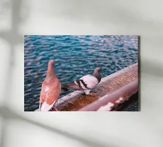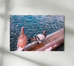 Una coppia di colombe si trovava fianco a fianco sulla tranquilla riva del fiume, con le piume grigie che brillavano nella pallida luce gialla del pomeriggio. Erano vicine l'una all'altra, con gli occhi dolci che riflettevano l'acqua scintillante. Una leggera brezza soffiava, facendo sbattere le loro ali, come se sussurrassero una semplice canzone d'amore. Lo spazio era silenzioso, lasciando solo l'immagine della semplice coppia di uccelli in riva al fiume tranquillo, che evocava un senso di pace e di amore completo.
