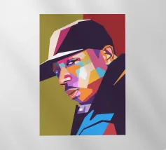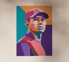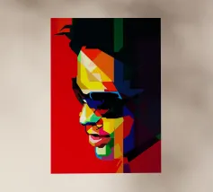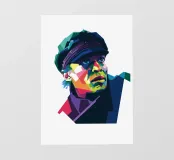 Miles Davis nello stile WPAP è ritratto con forme audaci e angolari e una vibrante esplosione di colori contrastanti. Il suo sguardo intenso, gli zigomi alti e la sua caratteristica tromba sono stilizzati con precisione geometrica, catturando il suo spirito innovativo e ribelle. La composizione, astratta ma riconoscibile, riflette la sua leggendaria influenza sul jazz, fondendo l'estetica moderna della pop-art con l'energia dinamica della sua musica.