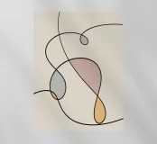 Una serie di linee nere morbide e curve creano un disegno astratto su uno sfondo chiaro. All'interno delle curve sono presenti alcune forme colorate, tra cui quella che sembra essere una goccia in grigio, rosa e giallo.