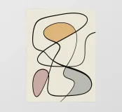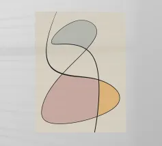 Forme e linee astratte si intrecciano in una composizione minimalista dai colori tenui. Il design presenta curve morbide e un equilibrio armonioso di forme su uno sfondo neutro.